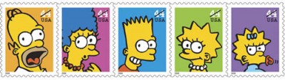 They have won 24 Emmys over its two decade and still counting run on Fox Televison, had a hit movie, and have sold millions of dollars in mechandise. I guess its time to put their fug on a US Postal Stamp. Starting May 7th you will be able to buy the 44 cent stamps featuring papa Homer, mama Marge, gangsta Bart, and La Sassy Lisa…oh yeah and homegirl Maggie.