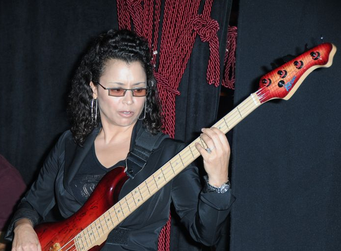 This was sent in to us. While attending a club in Beverly Hills called the Aqua Lounge, she was surprised to see one of our favorite all-time bass players Rhonda Smith playing with a band.