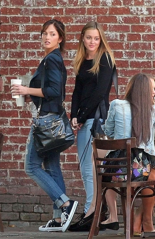 Leighton Meester & Minka Kelly were on set of the new movie they are doing together “Roommates.”