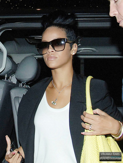 RiRi left Nozomi, a Popular London Restaurant, last night looking fierce. Love the hair, and look at that yellow bag, she is rockin’ it. Let’s not forget the New Chanel boots baby.