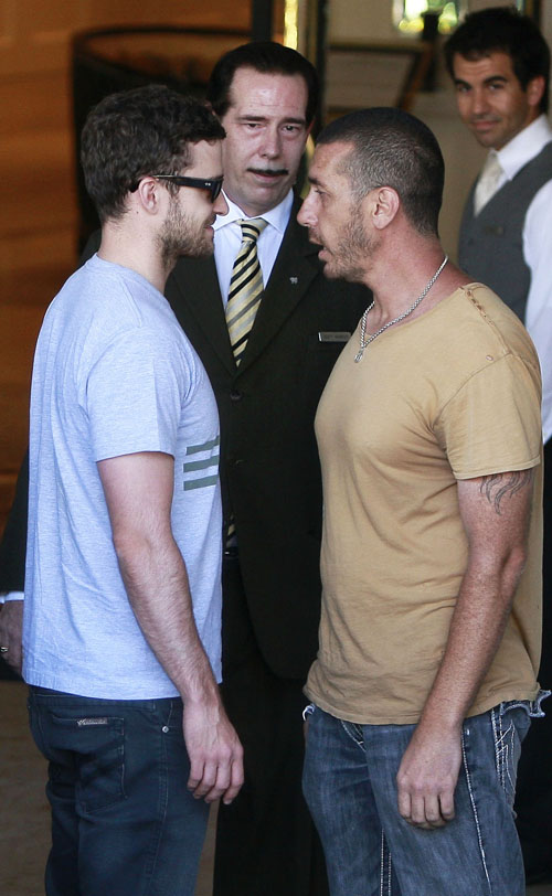 Yesterday, while Justin Timberlake was leaving a swanky Beverly Hills Hotel, he was being photographed by paparazzi. Justin called out the pap to step up to him and the pap did.
