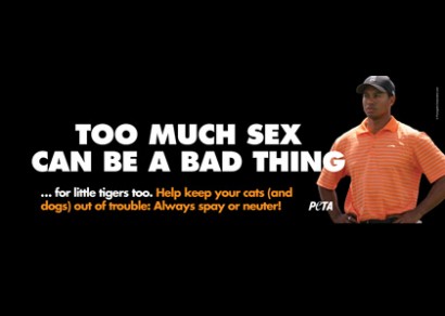 If using a celebrity face gets the word out about spay and nueter, why not. Tiger Woods should be glad that PETA is endorsing him. The question remains whether dogs and cats are having sex or mating. There is a big difference here.