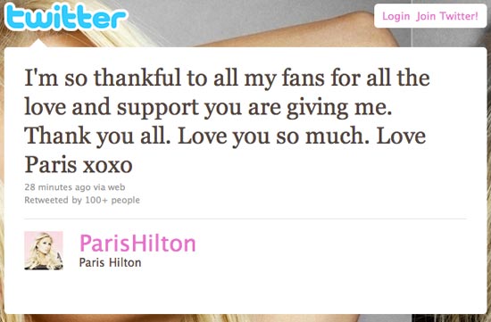 Paris Hilton's Twitter. Image: Twitter.com