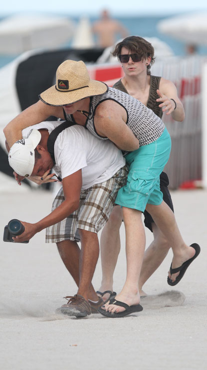 After the pap refused, Adam tried to take the camera away from him. Obviously, someone else was there, which is why we have these photos. Wonder if anyone on the beach has video of it?