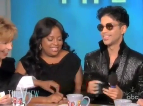 View host Sherri Shepherd looked like she was about to faint when Prince’s chair was placed beside hers. She asked Prince to say into the mic “Sherri I love you” (he obliged) and then like a crazed fan, asked if she could keep his gloves (he again obliged). But when she told Prince she has always wanted to sleep with him, he made a quick, humorous exit.