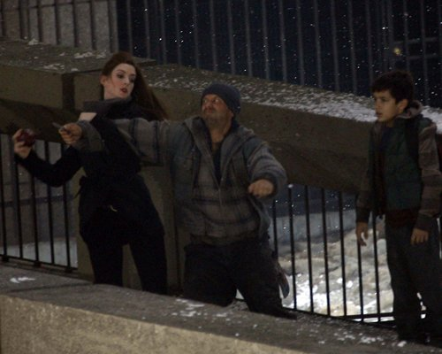 Anne Hathaway was filmed doing a fight scene for “The Dark Knight Rises” as Catwoman in L.A. over the weekend. Looks like Anne can avoid a punch pretty well.