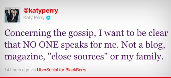 After a week of silence and moving vans, Katy Perry was forced to tweet about her divorce from Russell Brand after her parents said the “Divorce was a gift from God” last week.