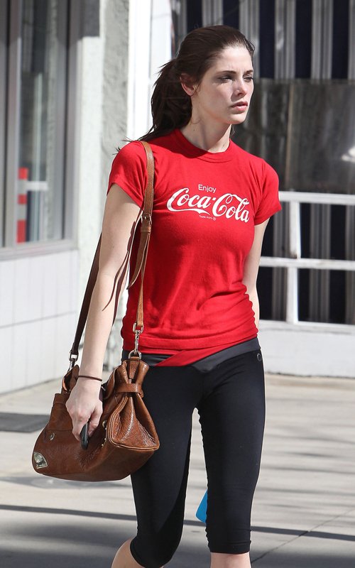 No woman likes to be told she looks tired…so….we will assume she had a hard work out as her body seems fit. Although it is usually milk that does a body good, but it seems that “Coca-Cola” may have the same affect on Ashley.
