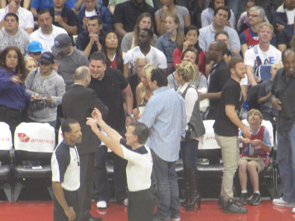 Mike missed quite a few Blake Griffin dunks checking out Billy just 4 seats over. BTW, wife is pretty. Good job.