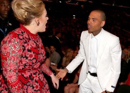 At the Grammys last week, Chris Brown did not stand up when Frank Ocean beat him for an award at the show. It was then reported the photo above was showing Adele dressing down Chris Brown for not standing when he lost. Sometimes, a photo can be misleading.