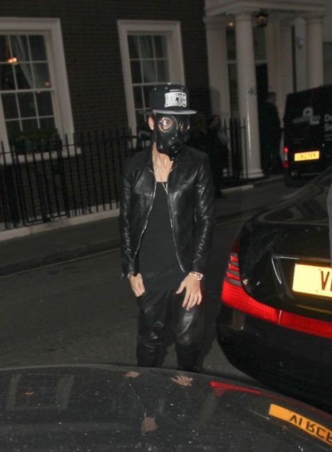 Bieber was seen around London last night wearing the gas mask he bought last week.