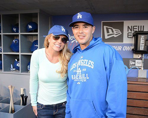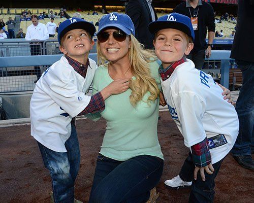 Britney Spears took in a Los Angeles Dodgers game, taking her kids Jayden James & Sean Preston to the game, where she met Andre Either.