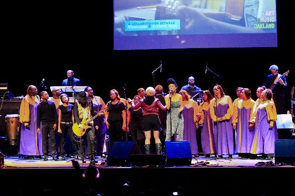 Opening the evening’s musical line-up was youth band, Oakland Future Quartet comprised of young musicians who’s ages ranged from 12 to 15 years old. This kicked off a frenzy of stellar performances by Michael Franti with members of Spearhead, Ozomatli, Orianthi, Goapele, Judith Hill, Kev Choice, Juan Escovedo, Lynn Mabry, spoken word poet Leroy Crosby aka Hykuu, Center of Hope Choir and Castlemont High School Choir.