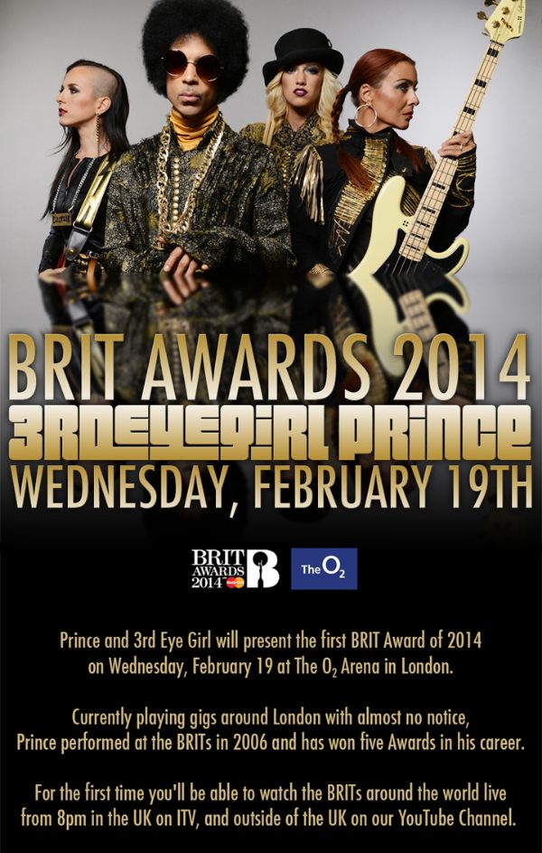 19 Feb PRINCE! 3RDEYEGIRL! BRIT AWARDS! TODAY! WATCH LIVE!