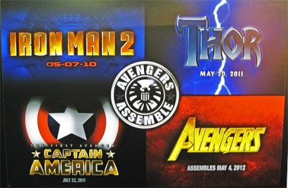 [caption id="attachment_9380" align="aligncenter" width="410" caption="Marvel Movies Coming Soon. Photo: Marvel.com"][/caption] Iron Man in 2010, Thor in 2011, Captain America in 2011 and the Avengers in 2012 and not even including Spider-man...