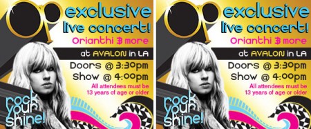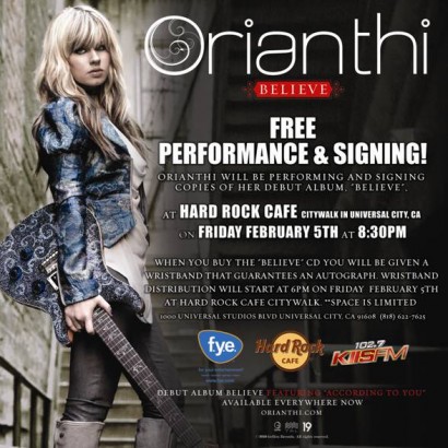 Orianthi will play a small show in LA this Thursday afternoon as part of the Wal-Mart OP “Rock You Shine” event. The event is being held at the Avalon in Hollywood and runs...